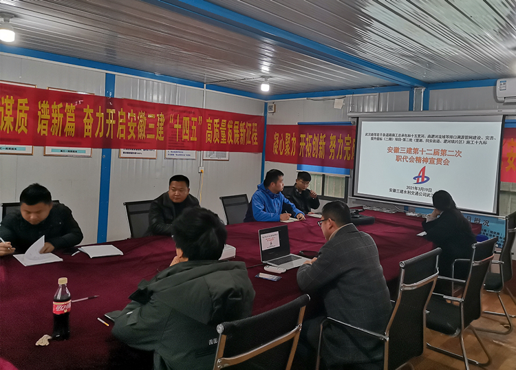 3月15日上午,水利交通公司召開(kāi)職代會(huì)精神宣貫會(huì),為廣大職工解讀公司職代會(huì)精神,要求各項(xiàng)目部應(yīng)懸掛橫幅、張貼圖解、召開(kāi)主題學(xué)習(xí)研討會(huì)等活動(dòng),貫徹落實(shí)好公司職代會(huì)精神。