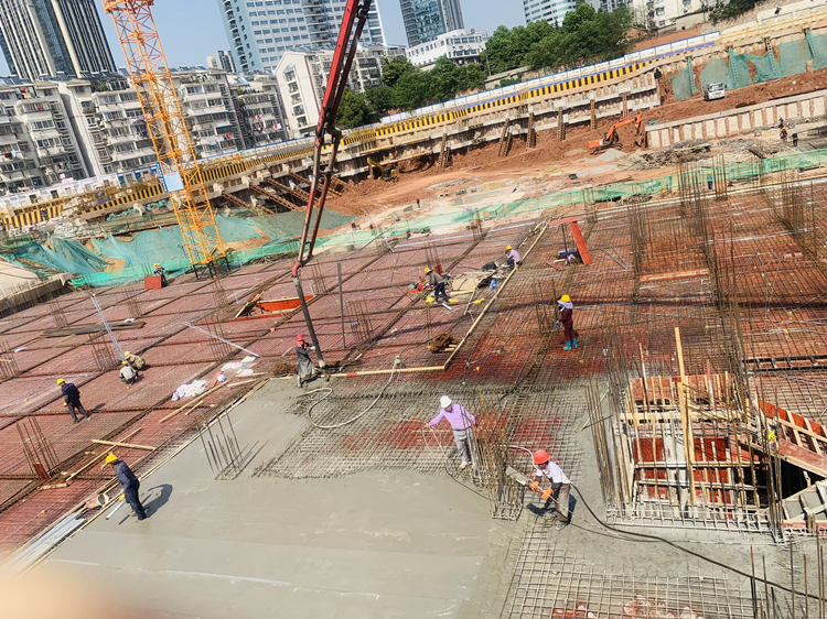 “五一”假期期間,一公司五省八地各項(xiàng)目搶抓黃金施工期,加大機(jī)械、人員投入力度,在保證工程質(zhì)量的前提下,加快施工進(jìn)度。圖為一公司北海吾悅廣場項(xiàng)目五一期間澆筑混凝土。