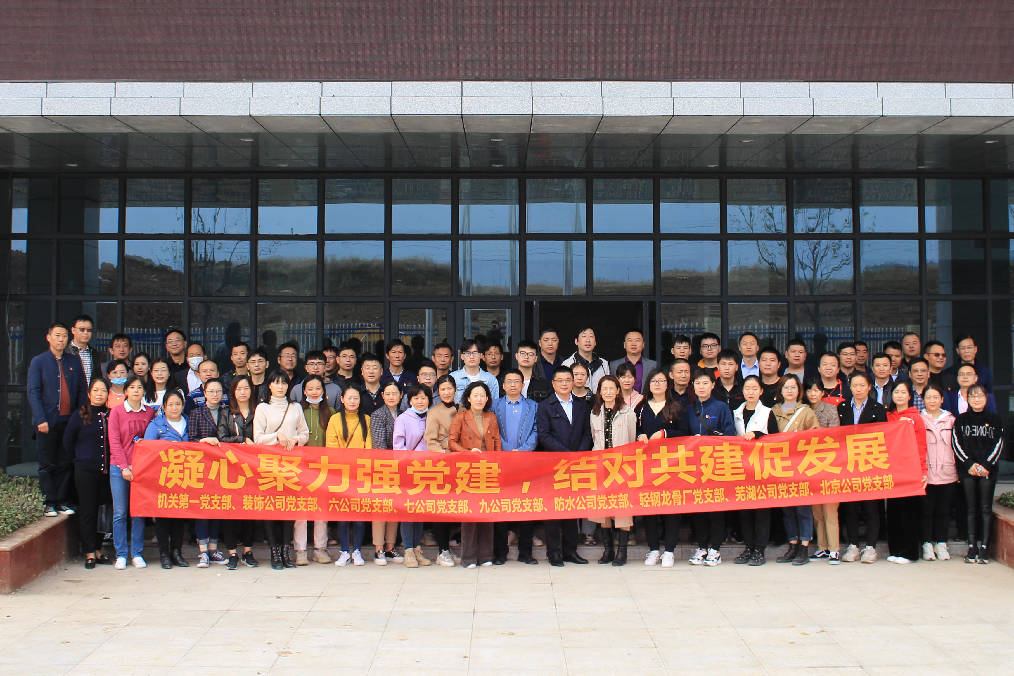 為進(jìn)一步加強(qiáng)基層黨組織建設(shè)和機(jī)關(guān)作風(fēng)建設(shè),密切黨支部之間的聯(lián)系,加強(qiáng)支部間的交流合作,實(shí)現(xiàn)黨建工作與業(yè)務(wù)互融互動(dòng),2020年11月18日下午,安徽三建機(jī)關(guān)第一黨支部聯(lián)合公司所屬裝飾公司、六公司、七公司、九公司、輕鋼龍骨公司、防水公司、蕪湖公司、北京公司黨支部,前往安徽建工北城工業(yè)有限公司項(xiàng)目部開展支部聯(lián)建主題黨日活動(dòng),活動(dòng)以“凝心聚力強(qiáng)黨建,結(jié)對(duì)共建促發(fā)展”為主題。九個(gè)支部70余人參與了此次活動(dòng)。